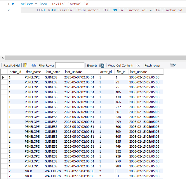 LEFT JOIN `sakila`.`film_actor` `fa` ON ((`a`.`actor_id` = `fa`.`actor_id`)))